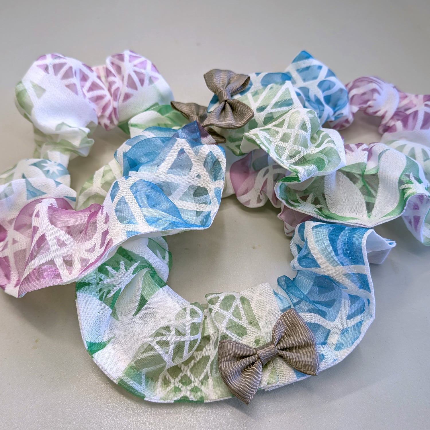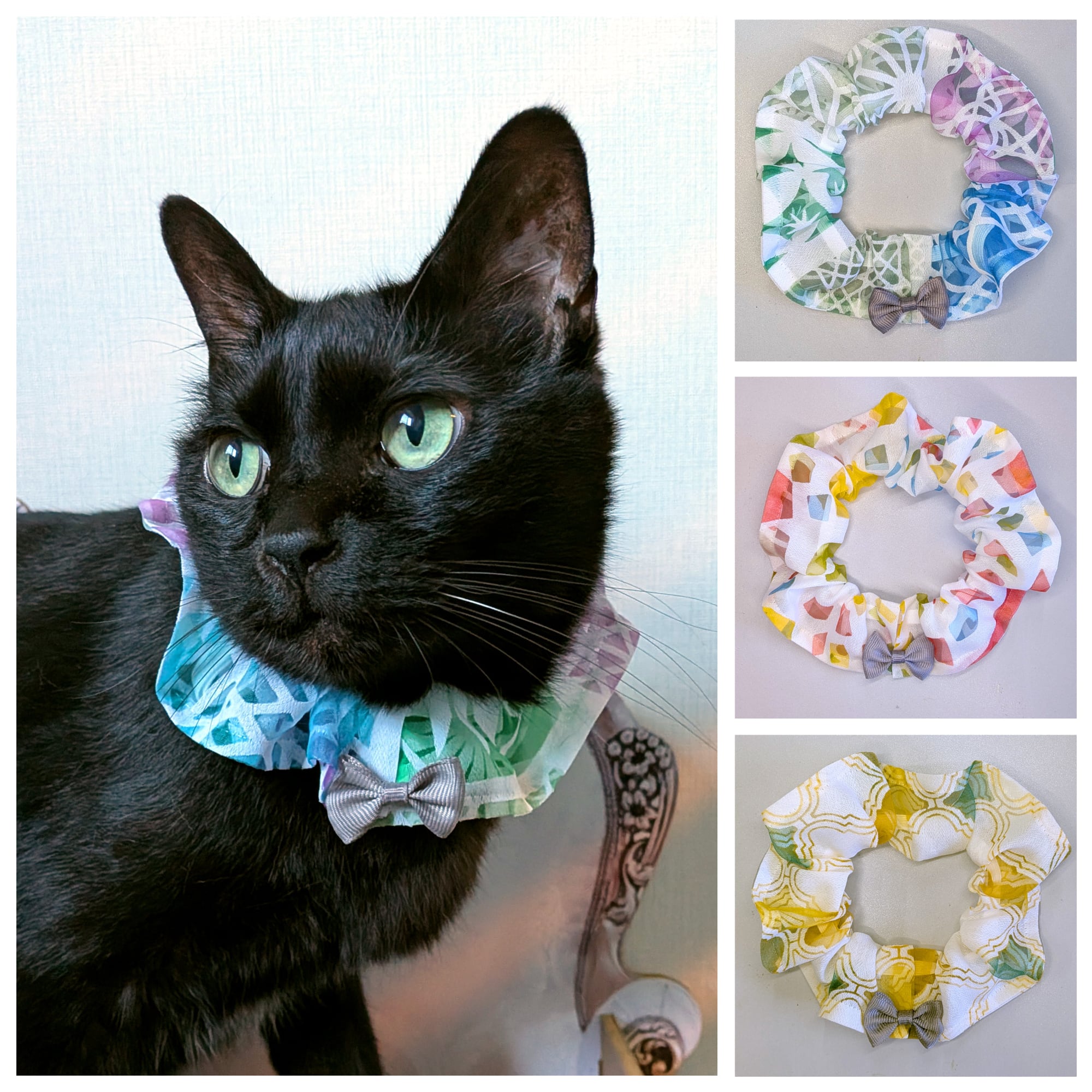 ペットと飼い主お揃い【ステンドグラスのようなシュシュ首輪(猫サイズ)】 透かし素材 オパール生地