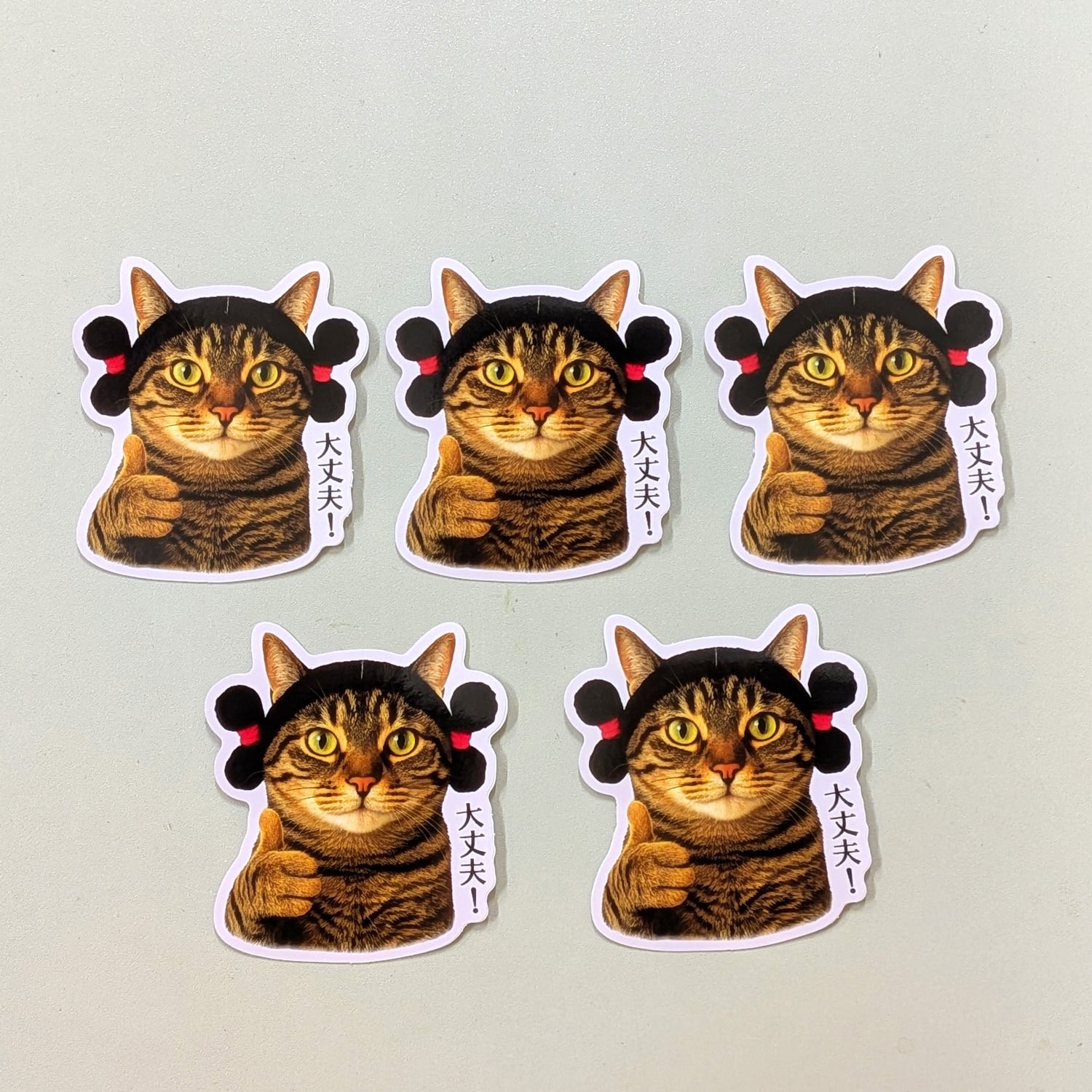 【送料無料 5枚セット】みずら猫が「大丈夫!」と励まししてくれるステッカー(防水)