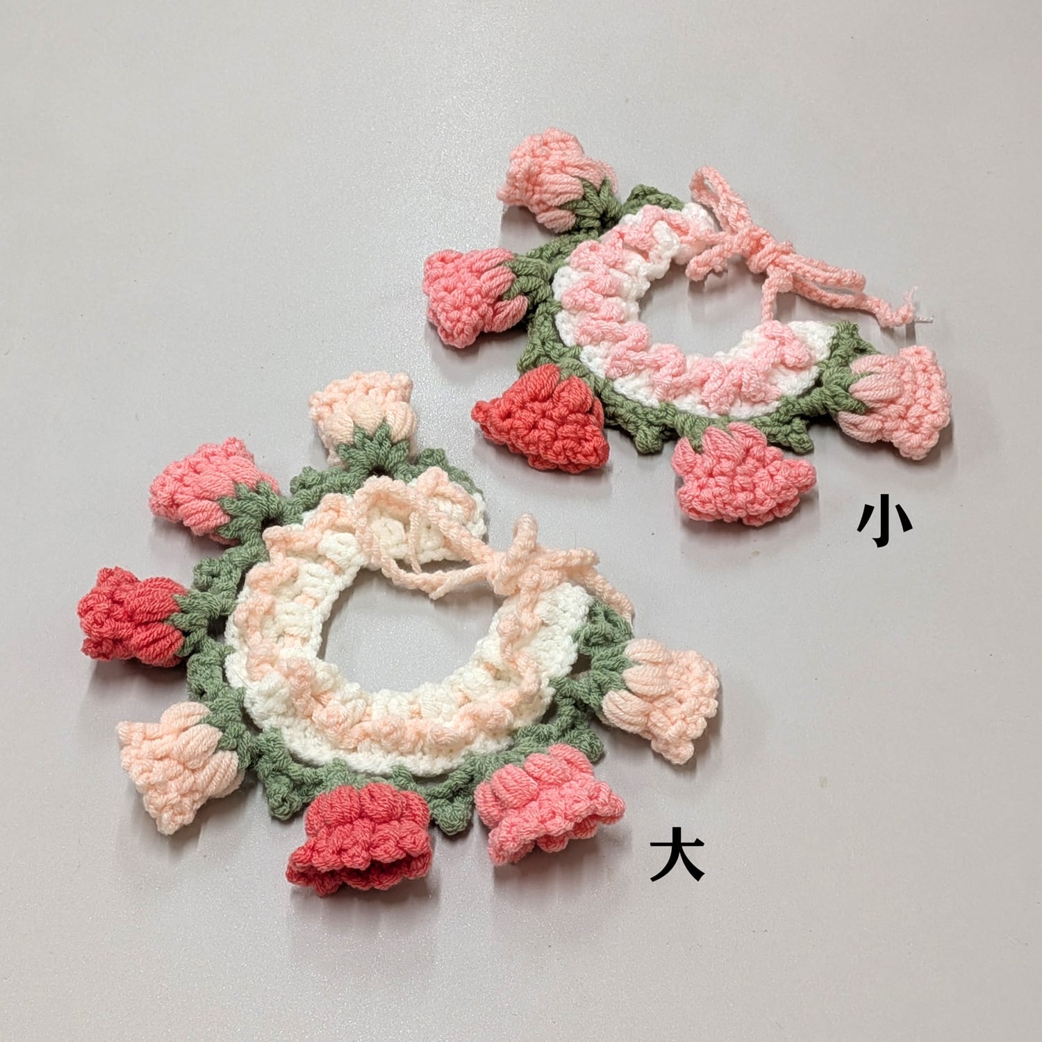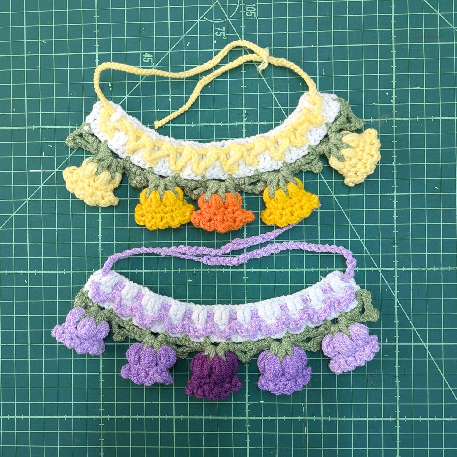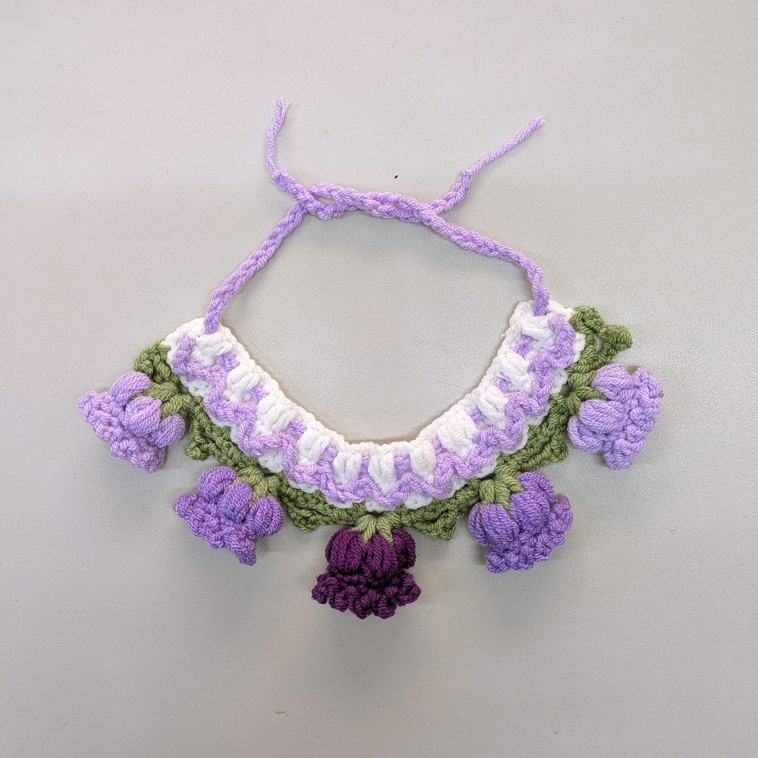 【ネコノテ堂セレクト】まるで花束みたいな毛糸の首飾り 猫 首輪 青 紫 ピンク 黄色 オレンジ 水色