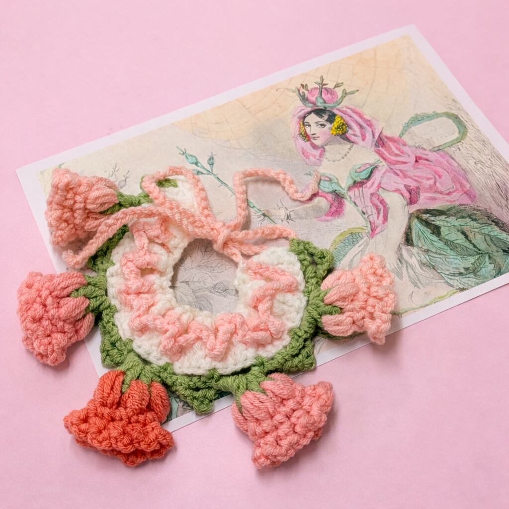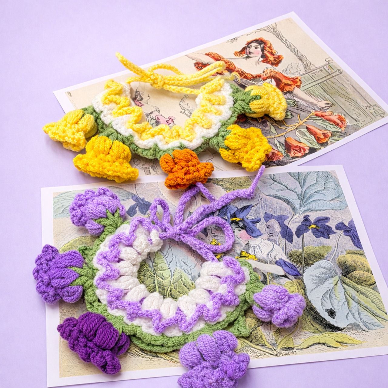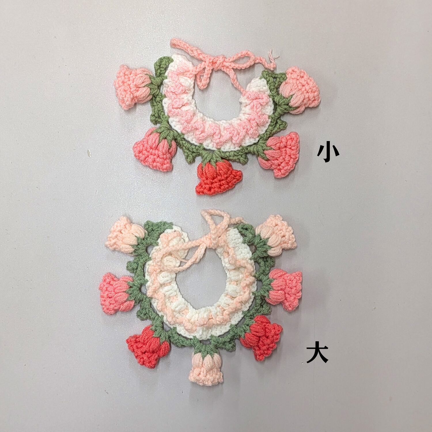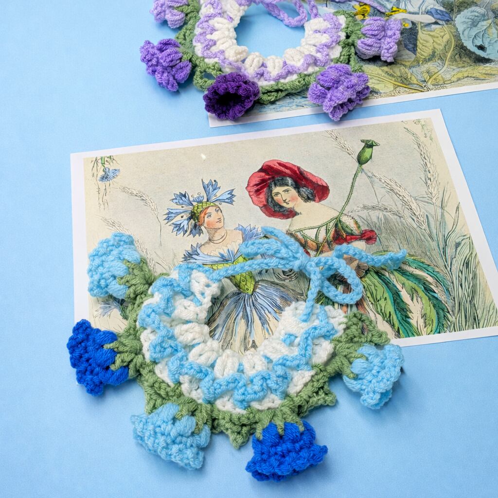 【ネコノテ堂セレクト】まるで花束みたいな毛糸の首飾り 猫 首輪 青 紫 ピンク 黄色 オレンジ 水色