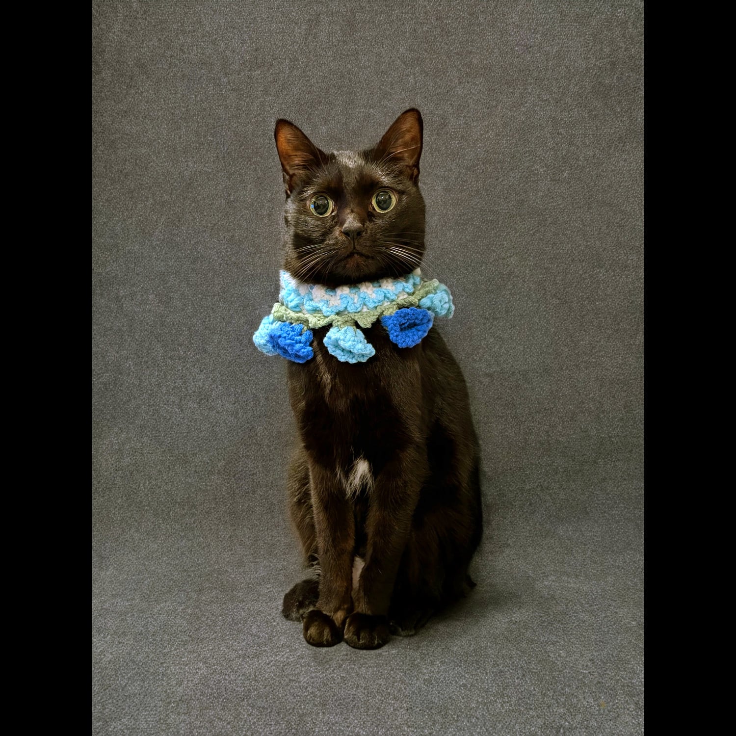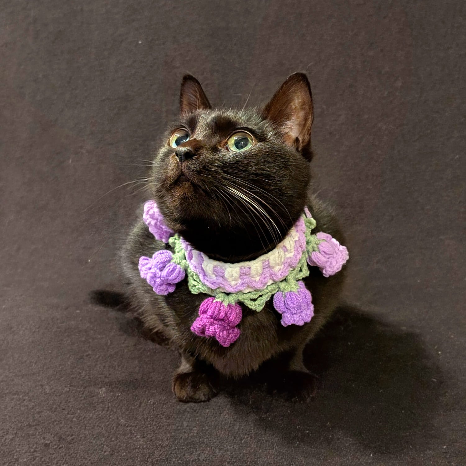 この首飾りは柔らかい素材で作られており、毛糸の暖かさが愛猫を包み込みます。寒い日でも元気に花を咲かせて冬のおしゃれを楽しんでください。