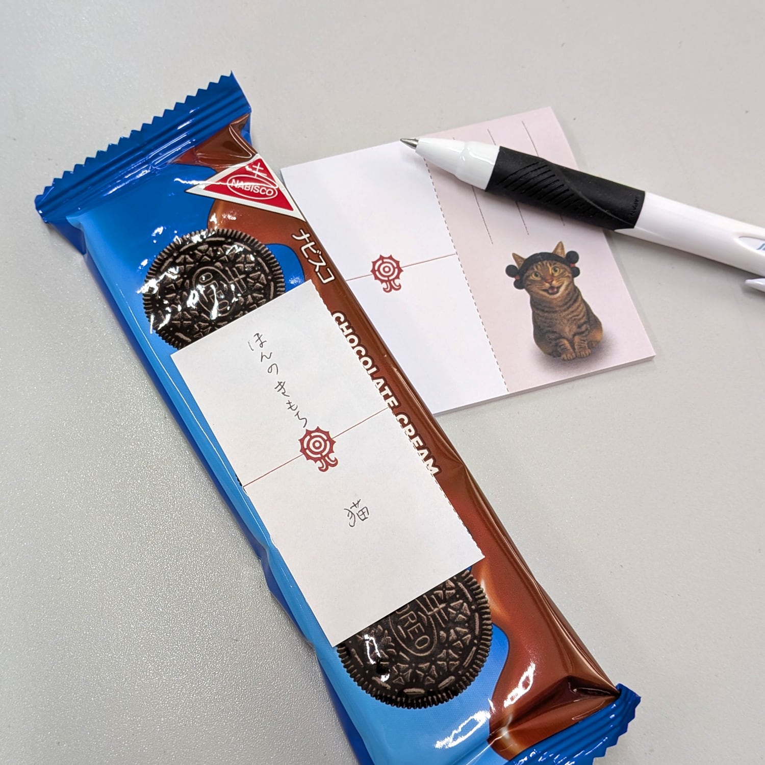 ちょっとしたお礼にみずら猫の付箋を貼って気持ちを伝えませんか?