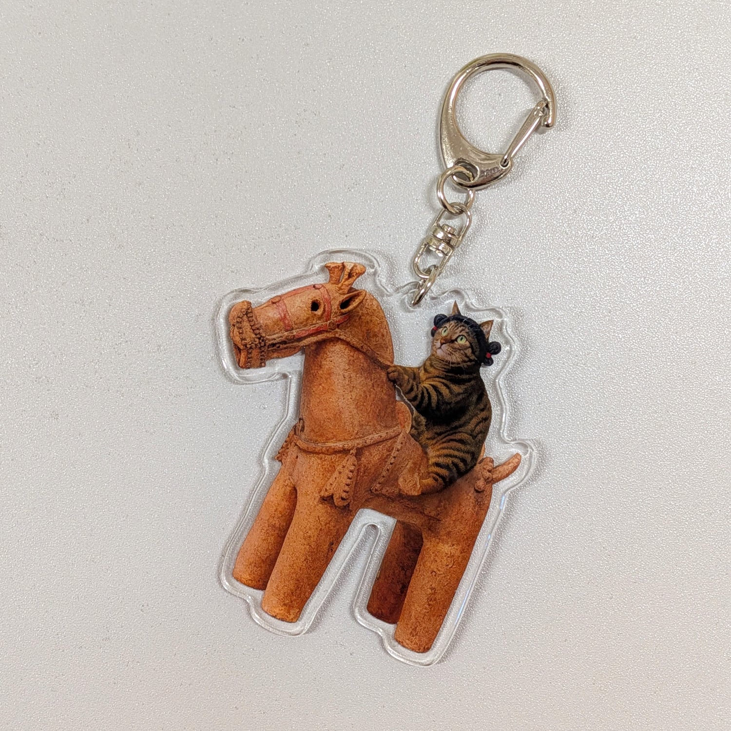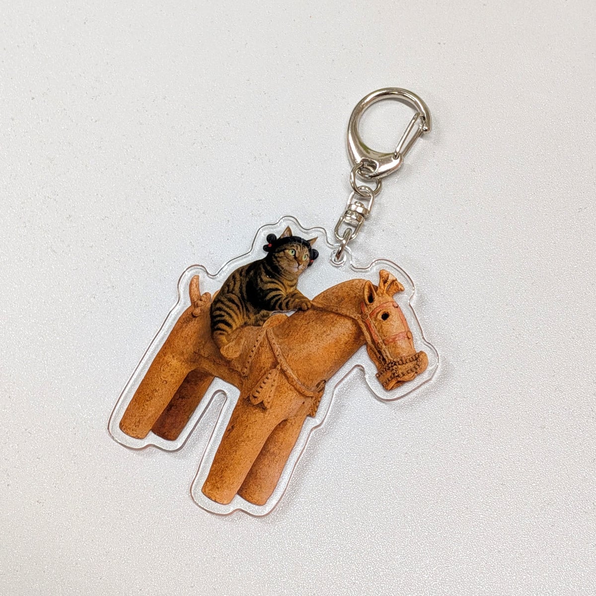 2026年の干支「午」 馬形埴輪にまたがるみずら猫 アクリルキーホルダー