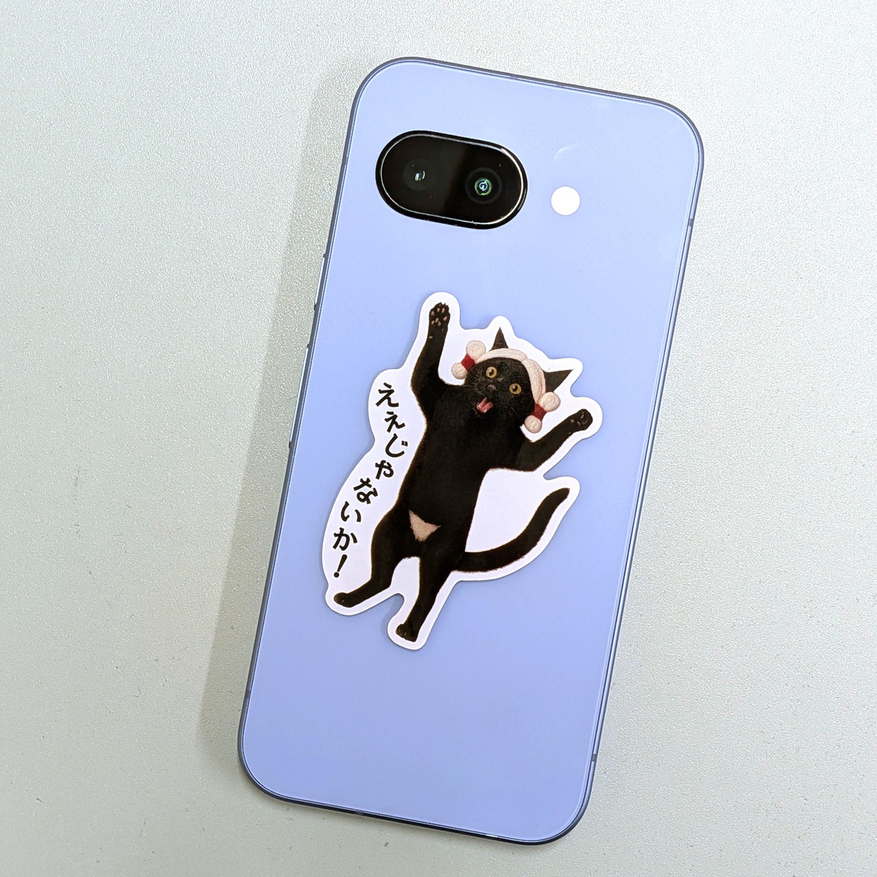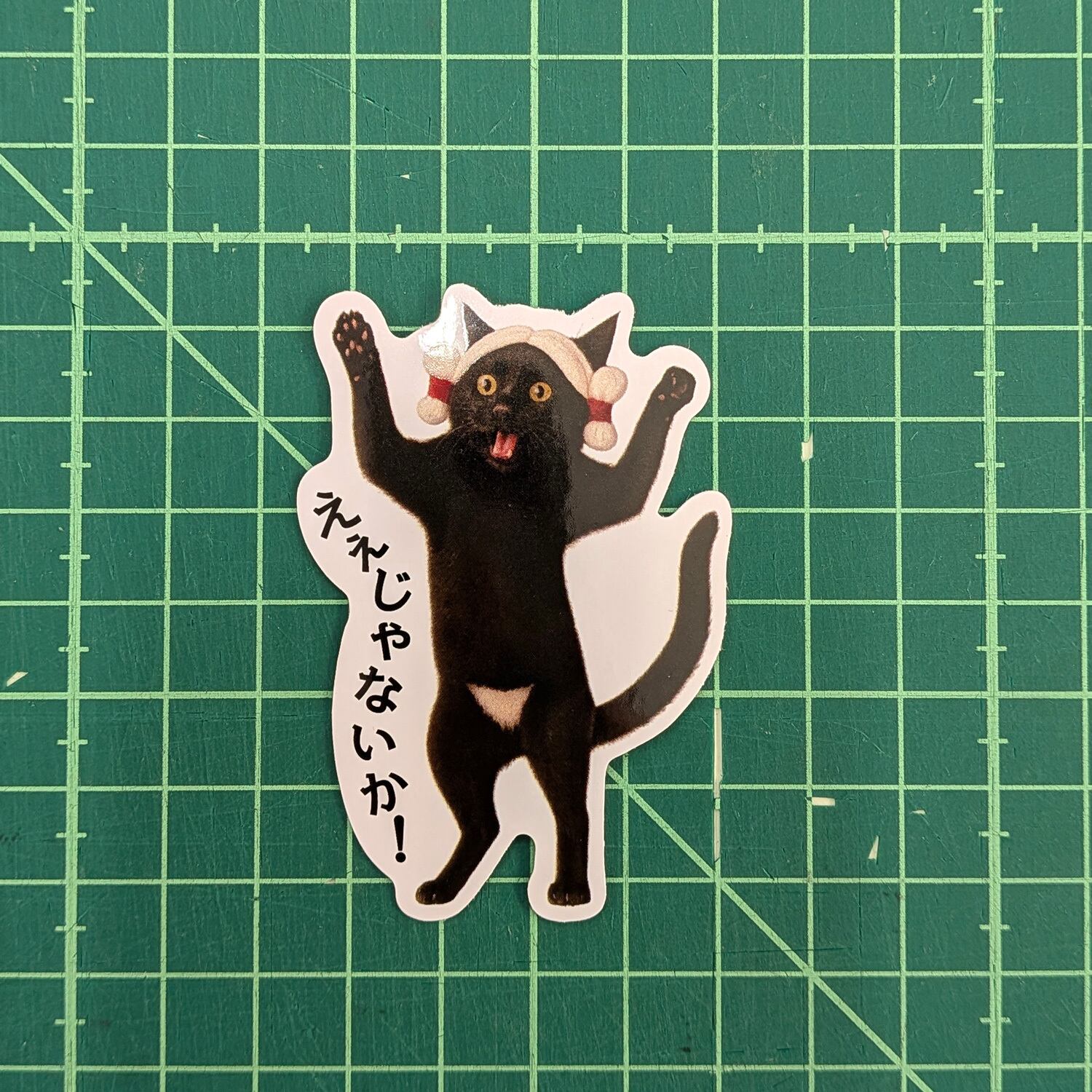 みずら猫が「ええじゃないか!」と言ってくれるステッカー(防水)