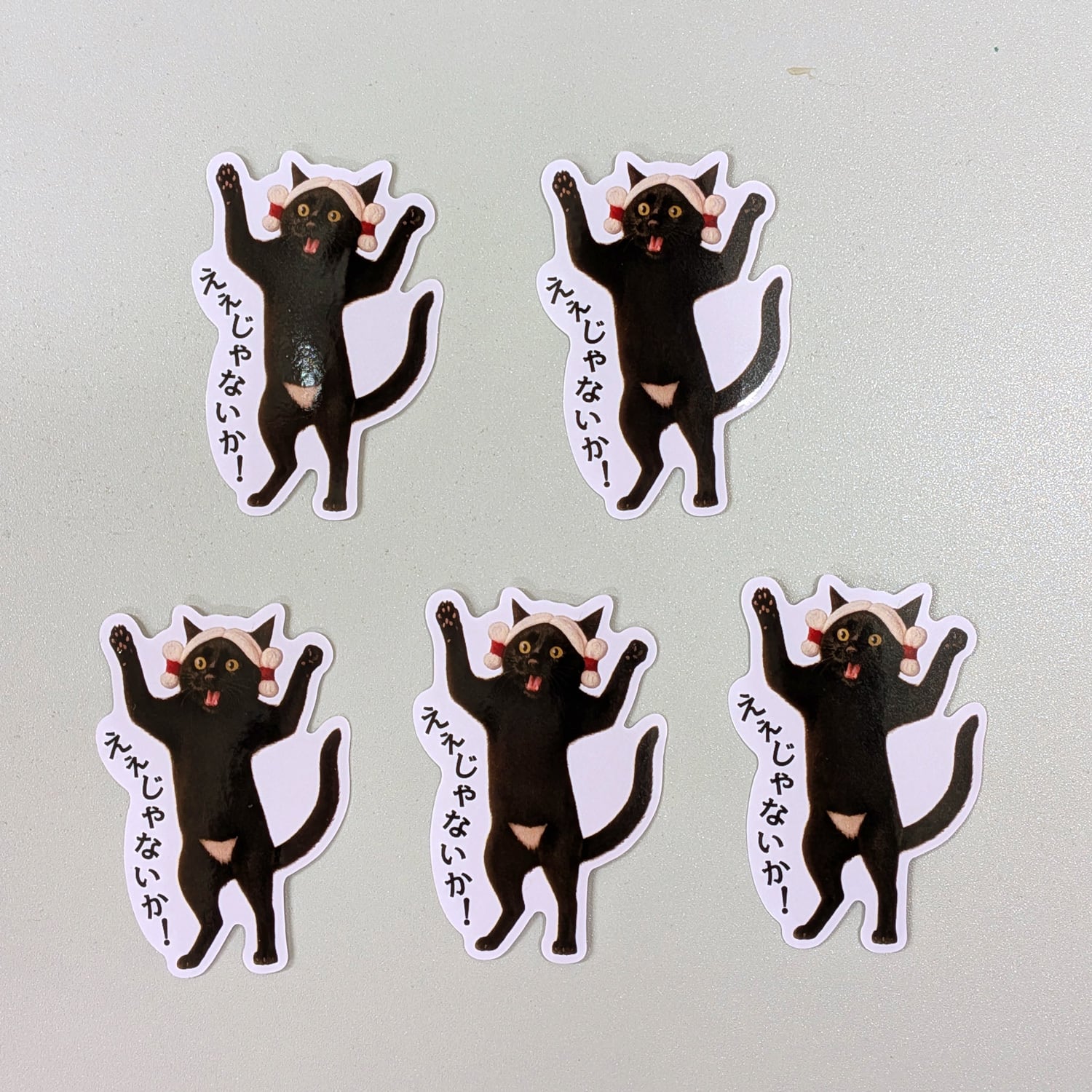 【送料無料 5枚セット】気持ちが楽に!みずら猫が「ええじゃないか!」と言ってくれるステッカー(防水)