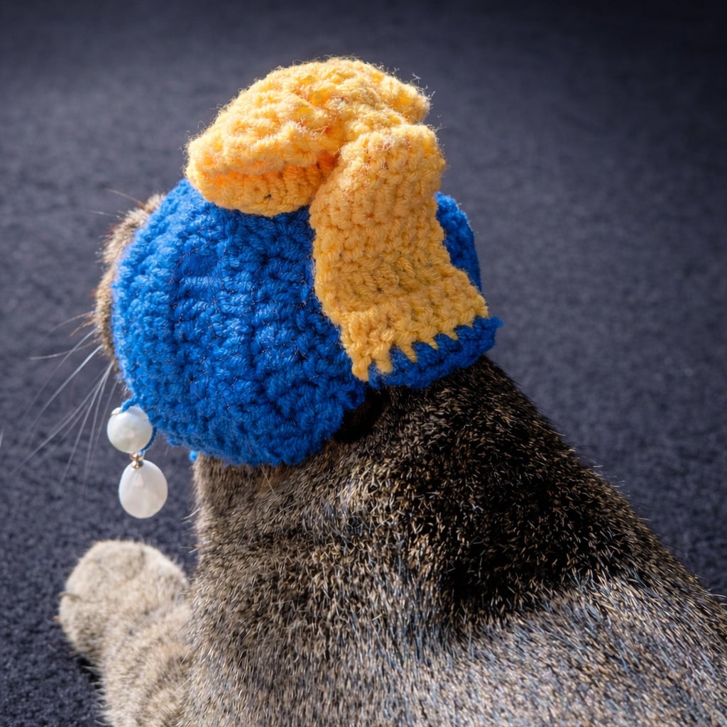 【予約販売 4月上旬発送】ペット用「真珠の耳飾りの猫」フェルメール 犬 猫 被り物 コスプレ 帽子 ぬい活 真珠の耳飾りの少女